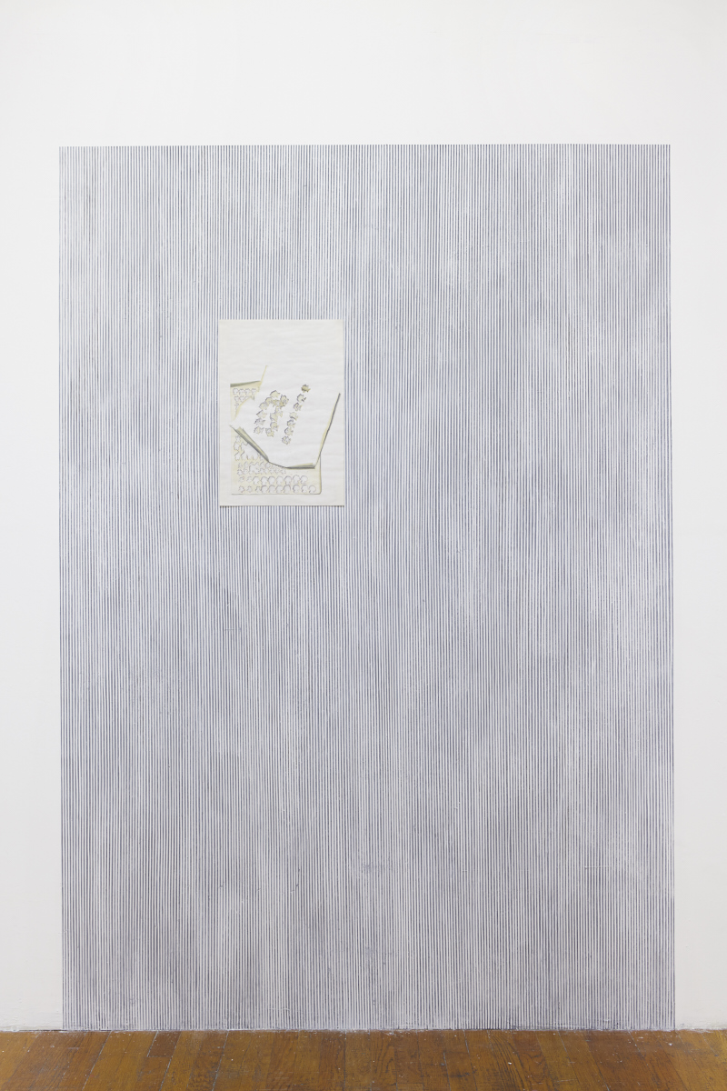 Vielmetter’s work frequently engages the mechanisms of trompe l’oeil painting as a way to re-interpret familiar objects and images, relying on the inevitable errors of her hands and eyes to translate and reimagine her subject matter until it is no longer easy to identify. While her practice is rooted in drawing, she experiments with a variety of surfaces and materials, including sounds and moving images. She often re-purposes older work, as well as the scraps and by-products of the process of her daily life, as a starting point for new work. She uses materials that change physically with the passage of time, and that carry embedded traces of their past uses and meanings, to make work that complicates the boundary between what is found and what is made, between the recognizable and the invented.