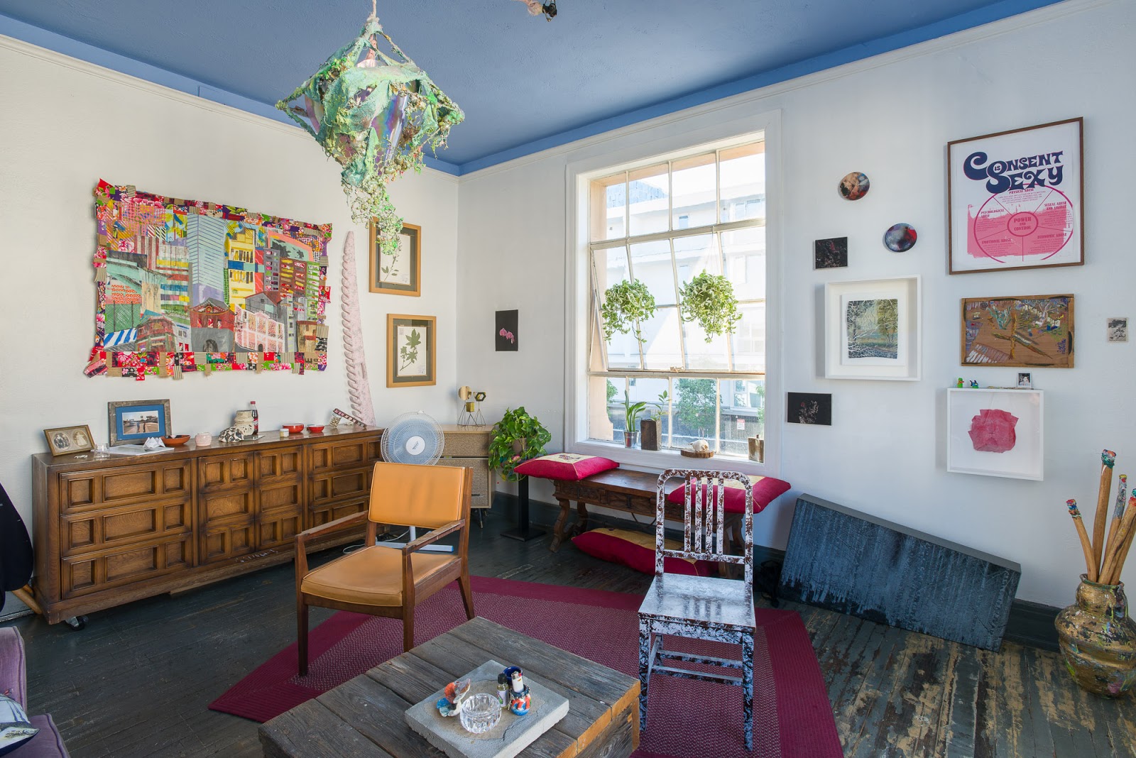 Krista Buecking, Akina Cox, Gilda Davidian, Ariane Vielmetter and Esther Pearl Watson have been meeting over the past several years in Los Angeles as a bi-weekly writing group to discuss their varied practices, to maintain critical engagement with one another, and to support each others’ continued development as artists and writers. In 2013, they organized an immersive group show, Hexenhaus, at a vacant home in Altadena, in which each artist occupied and transformed a specific room. Their intention is not to be understood as a collective, but rather as a group of artists whose distinct practices are nurtured by their mutual friendship and by the contrasts and crossovers in the subject matter they are dedicated to.